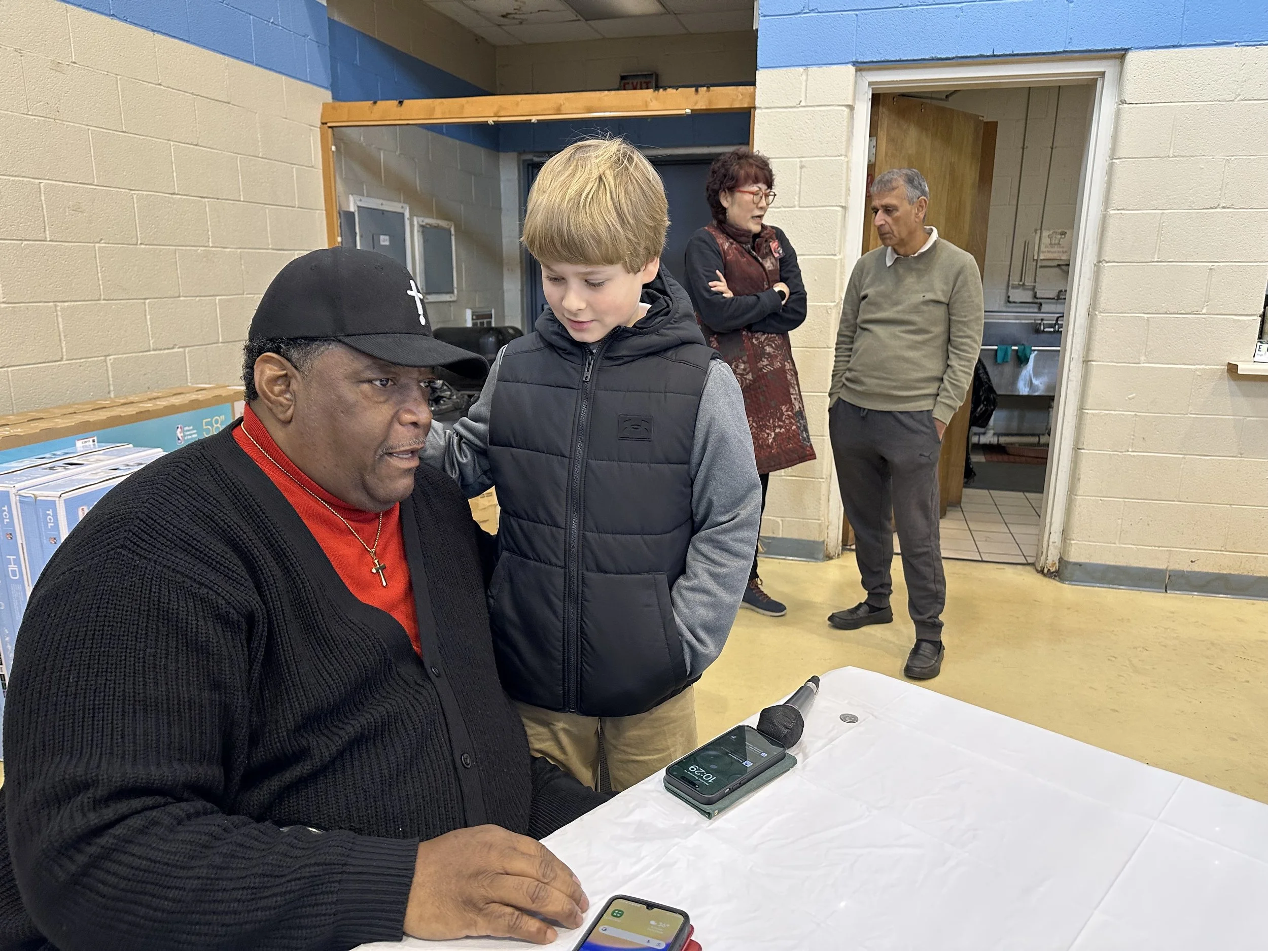 Teenager Jack Weed serving at the ex prisoner lunch in Chicago last year. Seen here with Rev Tommy Johnson.